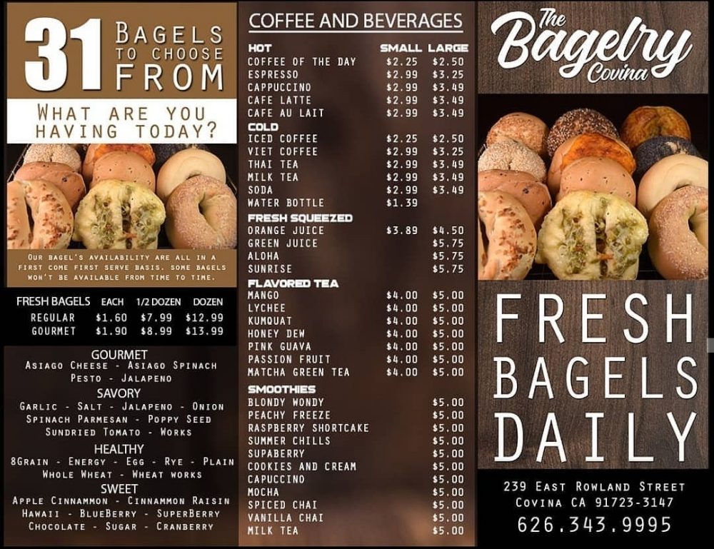 Introducing The Bagelry Covina, a cozy spot in Covina, CA, offering a wide array of bagel specialties, fresh juices, smoothies, and more. Enjoy signature dishes like The Atlantic with cream cheese, tomatoes, avocado, and sprouts, or try the Ultimate Breakfast with scrambled eggs, sausage, bacon, and cheese. Customers rave about the quality of the bagels, with one mentioning the fluffy and airy texture, perfect for a satisfying meal. The bagels are made fresh daily, ensuring a delicious experience every time. With a variety of options for breakfast, brunch, and lunch, along with vegan choices and fresh juice selections, The Bagelry Covina is a must-try for bagel lovers. Don't miss out on their unique flavor combinations and welcoming atmosphere.